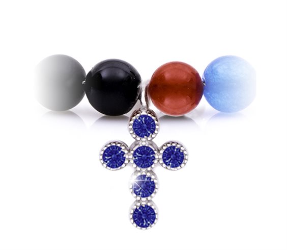 Bracciale Iesus • The Original • 33 elementi diversi per forma materiali e colori, per raccontare la storia d’amore infinita, una storia lunga più di 2000 anni... misura Small 14 cm+allungatore 3cm Argento Dorato, Argento Rodiato, Zirconi Bianchi, Zirconi Rubini, Zirconi Zaffiri