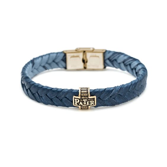 Bracciale PRECEM PATER - Blu Bracciale in fibra ecosostenibile con elemento argento 925 e chiusura regolabile in acciaio.
