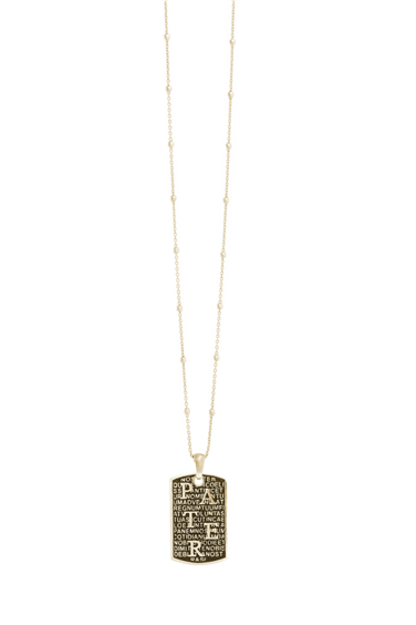 Collana PRECEM Pater Collana in argento Finitura oro giallo brunito lunga 45cm con pendente targa 16×26 mm con inciso in rilievo Padre Nostro in Latino