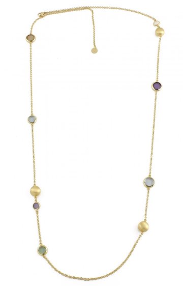 Realizzata interamente a mano, questa creazione Aquaforte nasce dalla passione e dall'esperienza di maestri orafi artigiani. In ogni particolare di questo gioiello in argento 925‰ si riconoscono l'origine italiana e lo stile internazionale. La placcatura in oro giallo 23 carati, rivestita da uno speciale trattamento, è rigorosamente eseguita senza alcun rilascio di nichel e cadmio. La collana è lunga 100 cm + 3 cm di catenella di regolazione