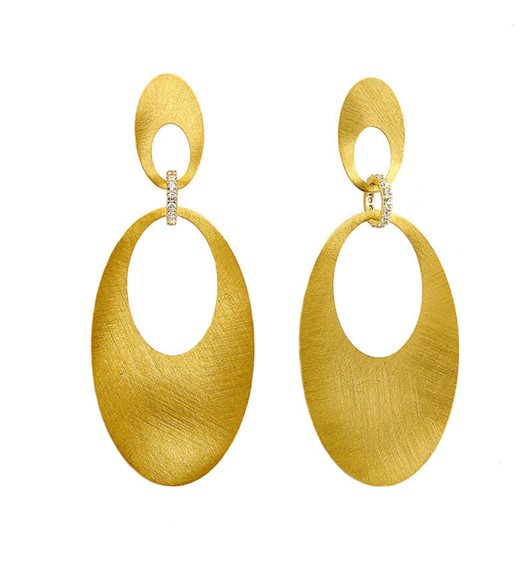 Maxi Orecchini Retrò con due elementi ovali Maxi orecchini con due elementi ovali, tagliati su foglio d’argento 925‰ placcato oro giallo 23 ct, e tenuti insieme da rondelle di cubic zirconia. Cm 7 argento 925/000 placcatura in oro giallo 23 carati rivestimento con speciale trattamento che protegge dalla naturale ossidazione del metallo orgogliosamente fatto a mano in Italia placcature rigorosamente senza alcun rilascio di nichel e cadmio comfort fit