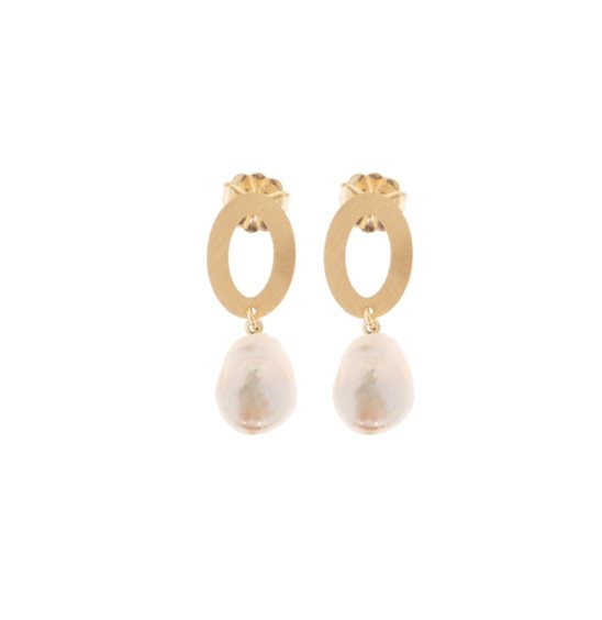 Orecchini con elementi ovali a lastra e perle barocche in AG 925‰ placcato oro giallo 23 ct. argento 925‰ placcatura in oro giallo 23 carati rivestimento con speciale trattamento che protegge dalla naturale ossidazione del metallo orgogliosamente fatto a mano in Italia placcature rigorosamente senza alcun rilascio di nichel e cadmio comfort fit