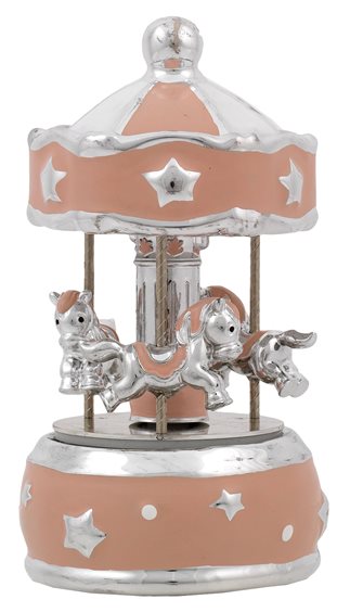 Carillon in resina argentata colore rosa con luce notturna a led. Il funzionamento delle luci è separato dalla funzione carillon.