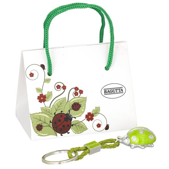 Portachiavi in resina con cordoncino rosso in ecopelle e coccinella smaltata colore rosso. Brisee in acciaio