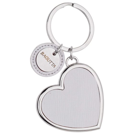 Portachiavi in acciaio con cuore pendente in ecopelle bianca Brisee in acciaio Possibilità di poter incidere sul retro del cuore (servizio con costo aggiuntivo)