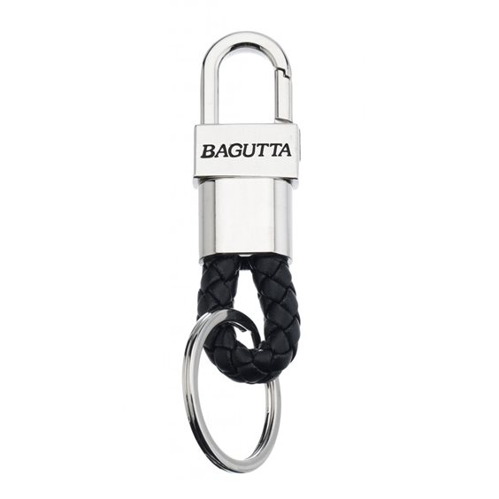 Portachiavi in acciaio con moschettone, attacco brisee e corda in ecopelle nero