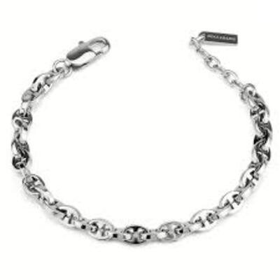 Bracciale da Uomo di Boccadamo della collezione Man della linea Man. Bracciale in acciaio a maglia marina ovale liscia.. Materiale: acciaio 316L anallergico nichel free. Misure: lunghezza regolabile fino a cm 22. Chiusura: con moschettone.