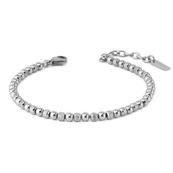 Bracciale uomo con boule lisce e boule diamantate Materiale: acciaio 316L anallergico nichel free Misure: lunghezza regolabile fino a cm 22 Dimensioni: boule mm 4 e mm 4,5 Chiusura: con moschettone