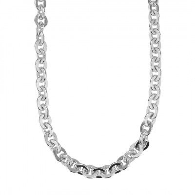 Collana a maglia ovale piatta con firma Boccadamo a contrasto placcata oro giallo. Materiale: argento Produzione: realizzato a mano in Italia Misure: lunghezza cm 50 Chiusura: con moschettone Garanzia: 2 anni