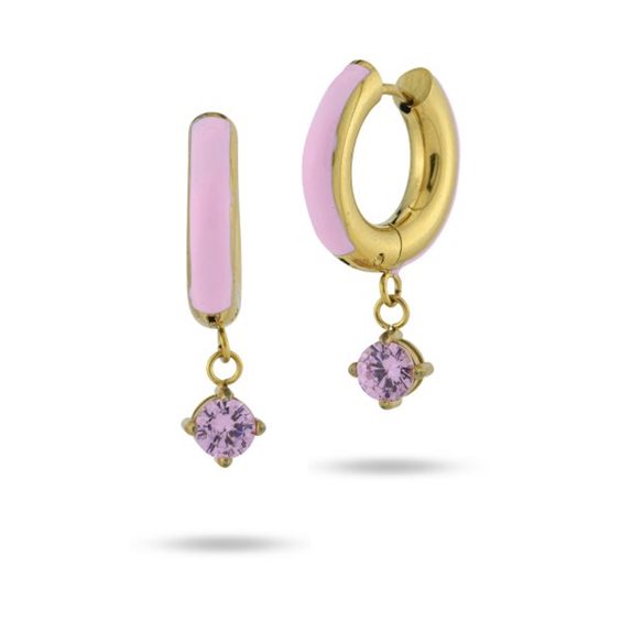 Orecchini a cerchio con zircone grande rosa e cerchio smaltato rosa Materiale: acciaio Misure: lunghezza cm 1 Dimensione: zirconi mm 10,30 Chiusura: a scattino