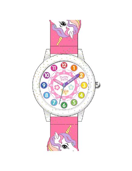Driin Drin Unicorno Glitter Orologio bambina collezione Driin Drin by Capital, ideale per imparare a leggere l’ora. Lancette didattiche: indicano chiaramente “ore” e “minuti” per aiutare nell’apprendimento Cassa in plastica da 32 mm con fondello in acciaio Cinturino morbido in silicone con soggetti in rilievo 3D Colori vivaci e design pensato per i più piccoli