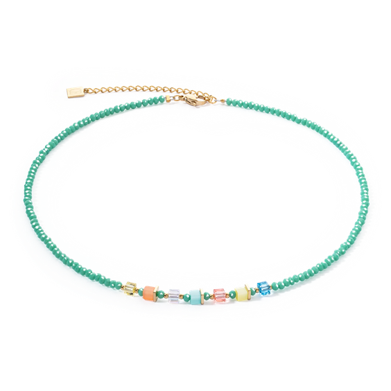 Collana Joyful Colours verde-multicolore La collezione JOYFUL COLOURS continua a crescere con collane, orecchini e bracciali colorati, come la collana Joyful Colours verde multicolore. Il design leggero e giocoso, con colori vitali che significano energia e voglia di fare, ci aiuta ad essere attivi. Non ne avrete mai abbastanza di questi stimolatori dell'umore! MATERIALE: Cristalli Swarovski® Occhio di tigre sintetico Polaris Vetro molato Acciaio inox oro LUNGHEZZA: 42 cm + 6 cm catenella di prolunga BLOCCO: Chiusura a moschettone acciaio inox oro