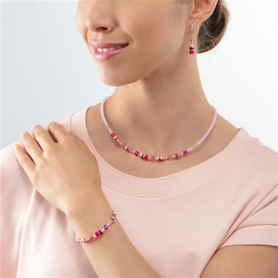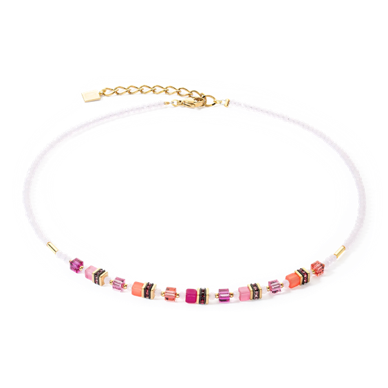 Collana Mini Cubes Magenta Viva Magenta! Collana in stile Mini Cubes. La variante cromatica oro-magenta è il mix perfetto per gli attuali trend della moda. Ogni gioiello che ordini da COEUR DE LION viene adagiato di una pregiata custodia di design e consegnato con un certificato di autenticità. MATERIALE: Occhio di tigre sintetico Cristalli Swarovski® Polaris Rondella strass Vetro molato Acciaio inox oro LUNGHEZZA: 42 cm + 6 cm catenella di prolunga BLOCCO: Chiusura a moschettone acciaio inox oro