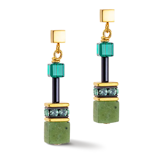 Orecchini GeoCUBE® Iconic Precious verde All'insegna del verde, questi eccezionali orecchini GeoCUBE® con vere pietre vere come l'avventurino verde, regalano armonia a chi li porta. Ogni gioiello che ordini da COEUR DE LION viene adagiato di una pregiata custodia di design e consegnato con un certificato di autenticità.