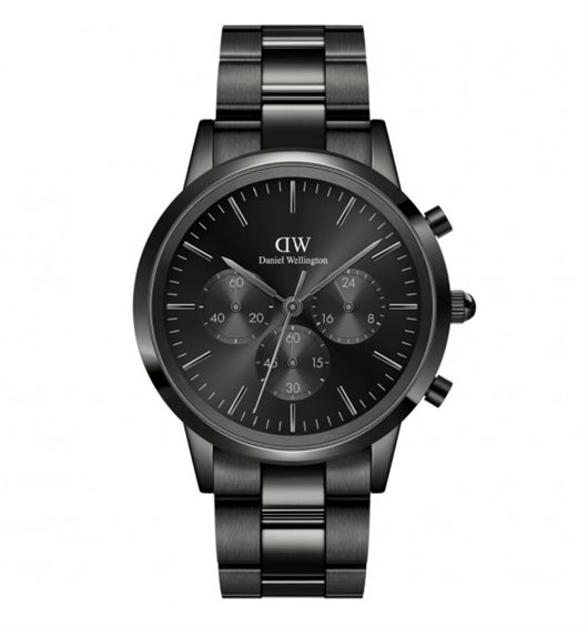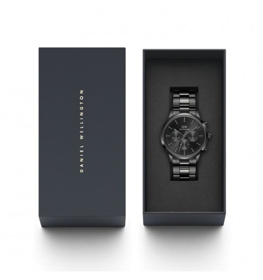 Orologio da uomo con movimento al quarzo e funzioni di cronografo. Cassa in acciaio inox con finitura nera dal diametro di 42 mm. Quadrante nero sunray con indici a bastoni e logo nella parte alta. Cinturino in acciaio anallergico nero largo 21 mm. Chiusura deployante con pulsanti. Facilmente intercambiabile. Resistente all'acqua fino a 50 metri di profondità. Appartiene alla collezione Iconic Cronograph.