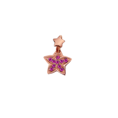 Ciondolo a forma di stella in oro rosa 9Kt con incastonati zaffiri rosa. La contromaglia è a forma di stellina.