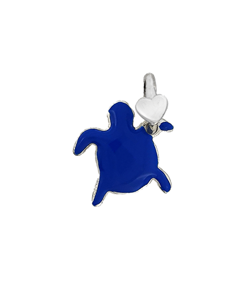 Ciondolo in argento 925 smaltato blu a forma di tartaruga con contromaglia a forma di cuore in argento