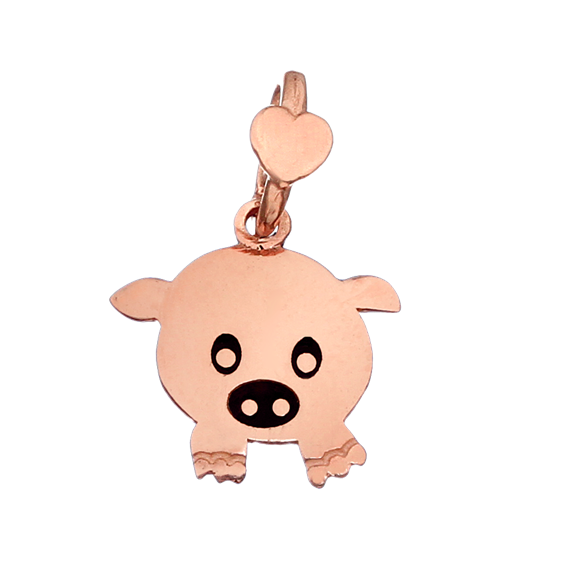 Ciondolo Maialino “Simpatia” Ciondolo della collezione I Juniors del magico mondo della natura Soggetto Maialino “Simpatia”. oro rosa con dettagli smaltati in nero.