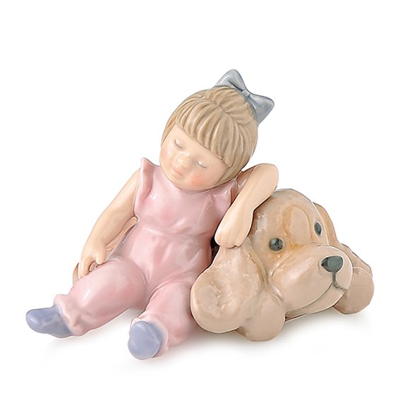 scultura in porcellana bambina con cane Misure 8x6 cm