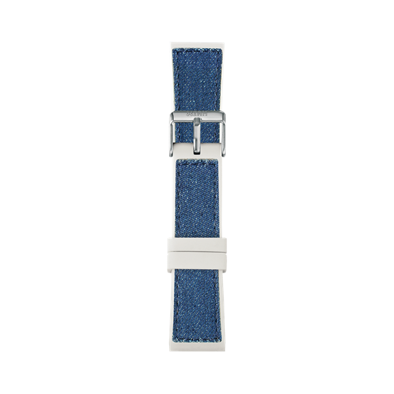 Cinturino in silicone bianco e jeans per cassa large Chiusura La chiusura è a fibbia in acciaio e può essere regolata facilmente in modo da adattare la grandezza dell’orologio a qualsiasi polso