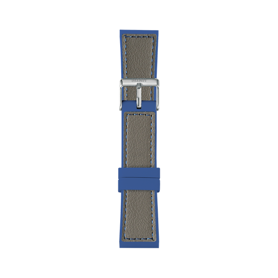 Cinturino in silicone Blu e pelle grigia per cassa large Chiusura La chiusura è a fibbia in acciaio e può essere regolata facilmente in modo da adattare la grandezza dell’orologio a qualsiasi polso