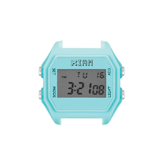 Descrizione Cassa medium in policarbonato soft touch azzurro Funzioni principali Suoneria, segnale orario ogni ora, cronometro, sistema 12/24 ore Calendario Una volta impostato, il calendario indica il mese, il giorno della settimana, l’ora, i minuti e i secondi Durata batteria La batteria alimenta l’orologio per ca. 2 anni Luminosità La retro illuminazione di questo orologio impiega una luce elettroilluminescente (el), che perde il suo potere illuminante dopo un periodo d’uso molto prolungato. La luminosità generata da questa funzione è difficile da vedere sotto la luce solare diretta. Temperatura Intervallo di temperatura per un normale funzionamento: 10° c ~ 40°c Cassa La cassa è in policarbonato effetto metallo o trasparente; vetro della cassa in acrilico Impermeabilità L’orologio ha un’impermeabilità di 5 ATM, pertanto si consiglia di evitare l’utilizzo dei pulsanti sott’acqua, in immersione o mentre si nuota. In caso di contatto con una quantità maggiore d’acqua o in caso di creazione di condensa all’interno, è consigliato un controllo immediato dell’orologio, in quanto l’acqua può corrodere le parti elettroniche presenti all’interno della cassa. Da abbinare ai cinturini in silicone della stessa collezione IAM
