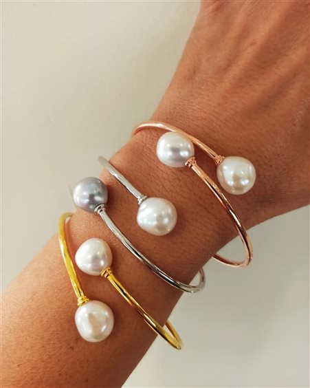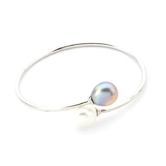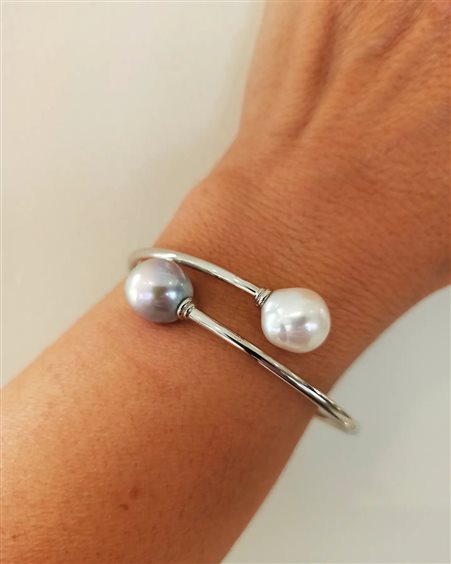 Bracciale in argento 925 realizzato a mano da sapienti mani orafe con perle naturali contrarier di colore bianco e grigio