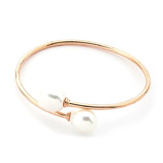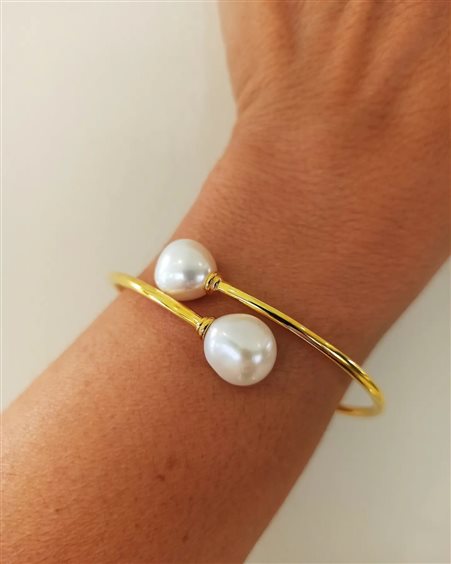 Bracciale rigido in argento 925 placcato oro giallo 18kt modello contrarier con perle naturali di colore bianco