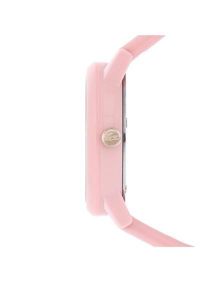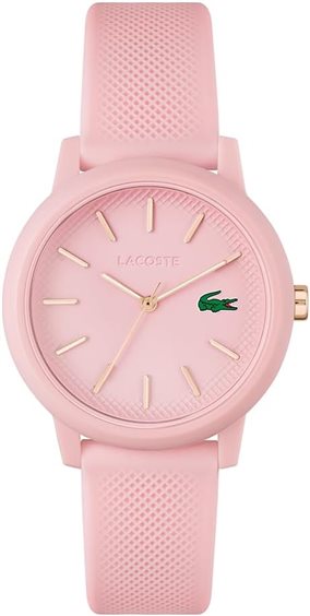 Movimento al quarzo con 3 lancette Spessore della cassa 9,2mm / Diametro della cassa: 36 mm Quadrante rosa semi-brillante con dettagli in oro rosso e distintivo logo LACOSTE in corrispondenza delle 3 Cinturino in silicone rosa con disegno petit piqué Resistente all'acqua a 5 ATM Può essere indossato durante la doccia o il nuoto, ma non durante le immersioni