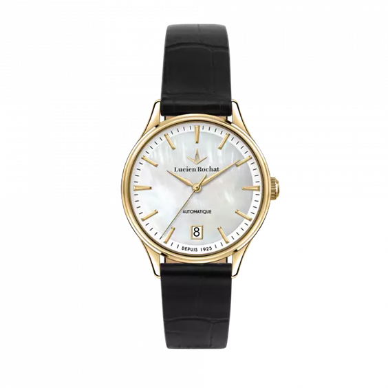 Orologio da donna con movimento Automatico. Cassa in Acciaio placcata oro rosa. Cinturino in pelle naturale colore nero.