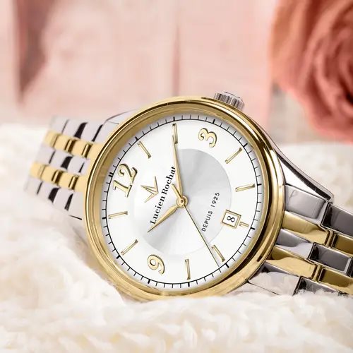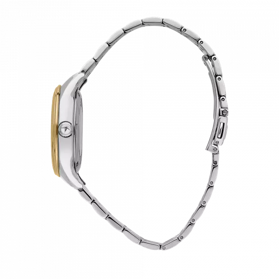 Orologio da donna solo tempo con datario alle ore 6. Cassa in Acciaio Pvd oro. Bracciale in acciaio colore argento e oro giallo. Chiusura deployment con pulsanti Collezione Charme 2021/2022