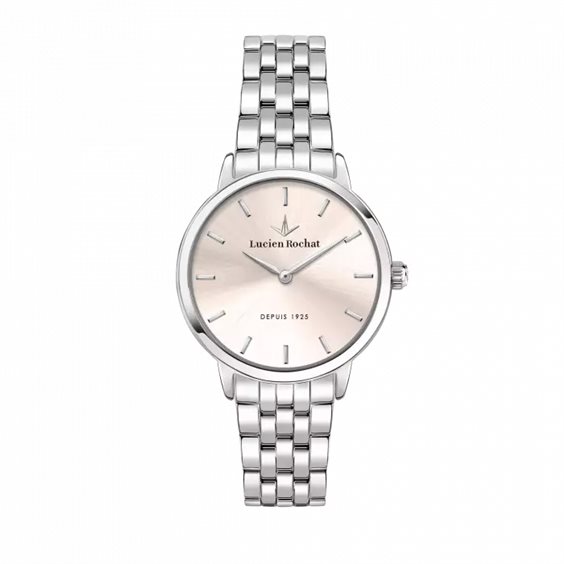 Materiale e finitura cassa Acciaio Misura cassa 30mm Spessore cassa 6.9 Vetro Trattamento zaffiro Materiale cinturino Bracciale in metallo Colore cinturino Argento Chiusura Box buckle with pushers Movimento Quarzo Water resistant 3 atm Garanzia: Ufficiale 2 anni Lucien Rochat Confezione Originale Lucien Rochat