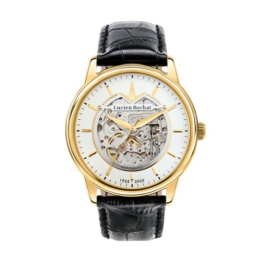 LIMITED EDITION - 100 ANNI Marca Lucien rochat Collezione Iconic Sottocategoria Automatico Genere Uomo Materiale e finitura cassa Acciaio, Pelle Misura cassa 43.00mm Spessore cassa 12.30mm Finitura cassa Lucido Colore cassa Gold Vetro Vetro zaffiro Materiale cinturino Pelle Colore cinturino Nero Chiusura Farfalla con pulsante laterale per cinturini Movimento Automatico Water resistant 3 atm Garanzia Ufficiale 2 anni Lucien rochat Confezione Originale Lucien rochat