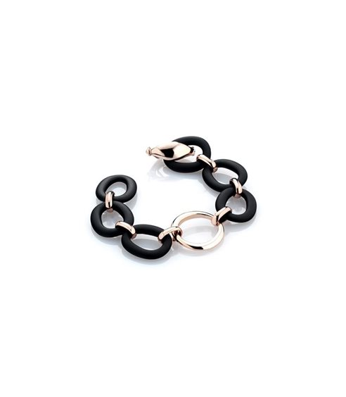 Bracciale con elementi in argento con finitura soft touch, tipica della collezione Rubber, ed elemento centrale e chiusura in argento rosè 925. Il bracciale è lungo cm 20 e ha una vestibilità confortevole e leggera, grazie alla lavorazione in elettroformatura.