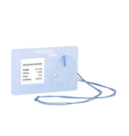 Ciondolo “Cuore” Blu con Diamante incastonato da 0.03 ct Ciondolo “Cuore” Blu con Diamante incastonato, un regalo prezioso per custodire i primi istanti di vita del bambino, momenti che ogni mamma terrà per sempre nel suo cuore. La confezione contiene: un Ciondolo con Diamante e una tavoletta in pasta FIMO dove poter imprimere la sagoma del piede o della mano del vostro bambino e conservarla nel tempo. Tipologia Diamanti Diamanti naturali taglio Brillante (Round) - 100% Made in Italy Colore: F/G Purezza: VS/SI1.
