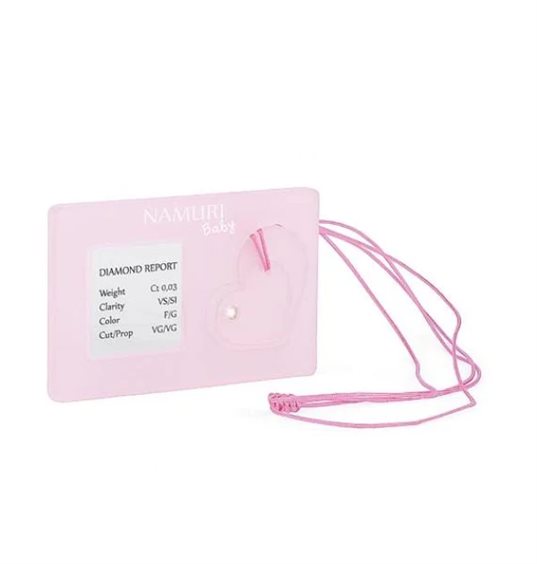 Ciondolo “Cuore” rosa con Diamante incastonato da 0.03 ct Ciondolo “Cuore” rosa con Diamante incastonato, un regalo prezioso per custodire i primi istanti di vita del bambino, momenti che ogni mamma terrà per sempre nel suo cuore. La confezione contiene: un Ciondolo con Diamante e una tavoletta in pasta FIMO dove poter imprimere la sagoma del piede o della mano del vostro bambino e conservarla nel tempo. Tipologia Diamanti Diamanti naturali taglio Brillante (Round) - 100% Made in Italy Colore: F/G Purezza: VS/SI1.