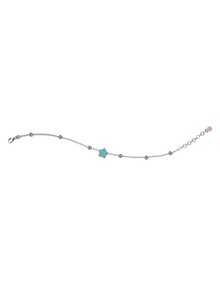 Bracciale in puro argento della linea Nanàn Bijou: rifinito nei dettagli, e impreziosito da piccole sfere argentate e una dolce stellina smaltata in colore turchese.