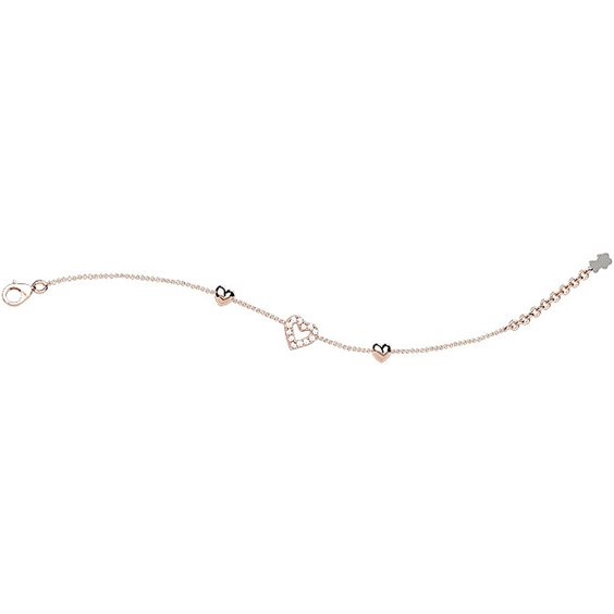 bracciale bambina in argento 925 placcato oro rosa con cuore centrale in zirconi bianchi e due cuoricini laterali lucidi.