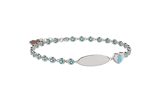 Bracciale Tennis in Argento 925 con pietre azzurre e targhetta incisibile