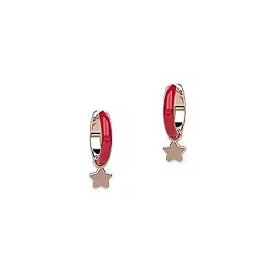 Orecchini a cerchio in argento 925 placcato oro rosa e smaltati color rosso. Pendente a forma di stella Chiusura a scattino