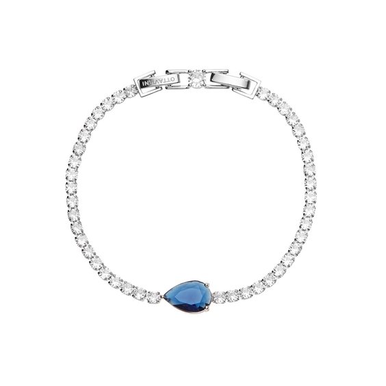 Bracciale in lega metallica con cubic zirconia colore bianco e blu, lunghezza 17+2 centimetri, larghezza 0,8 centimetri, peso 7 grammi, chiusura deployante.