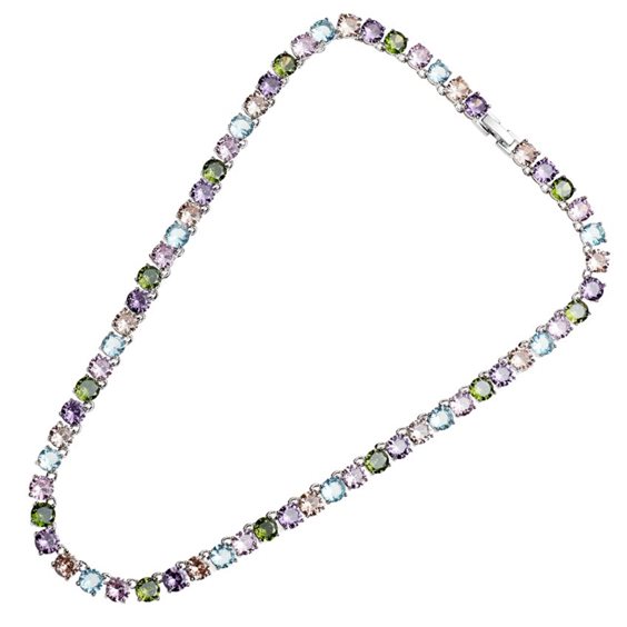 Collana rodiata con incastonati cristalli cubic zirconia colorati. Chiusura regolabile lunghezza cm 41 peso 41 gr
