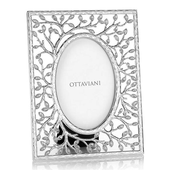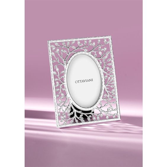 Cornice Ottaviani in metallo argentato con cristalli e fantasia foglie Misure esterne cm. 22.5 x 17.5 Misure interne cm. 9.5 x 14