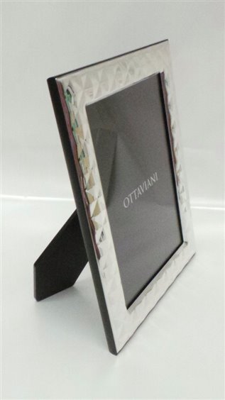 CORNICE PORTAFOTO ARGENTO LAVORAZIONE A DIAMANTE LUCIDA MISURA ESTERNA 18 X 24 INTERNA 13 X 18 , RETRO IN LEGNO SCURO .GARANZIA OTTAVIANI . PUO' ESSERE POSIZIONATA IN MODO ORRIZONTALE