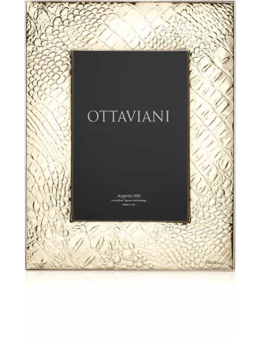 Cornice Ottaviani Coccodrillo Portafoto effetto pelle coccodrillo a rilievo in mirò silver di Ottaviani. Colore Oro Dimensioni: foto interna cm 13x18, cornice esterna cm 28x23
