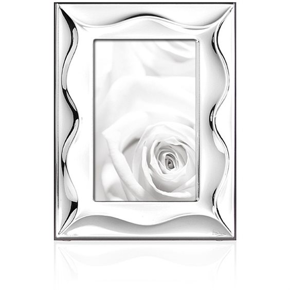 cornice in argento bilamina Ottaviani Portafoto con motivo "Dune" Dimensioni: foto 9x13 Cm, esterno 13x18 Cm. Retro in legno colore nero con possibilità di sostituire il veto con lo specchio in dotazione. La cornice può essere posizionata sia in verticale che in orizzontale.