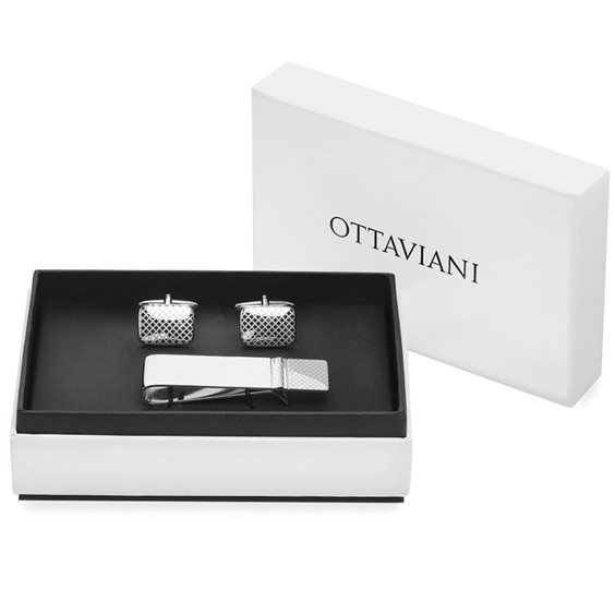 Set regalo in acciaio lucido con lavorazione a reticolato composto da: - fermasoldi - gemelli