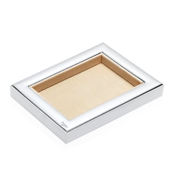 Vuotatasche "nido d'ape" 13x18 Vuotatasche in legno bianco con cornice in mirò silver lavorazione a nidi d'ape. Interno rivestito in velluto color crema