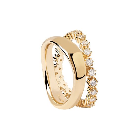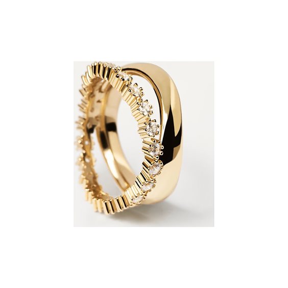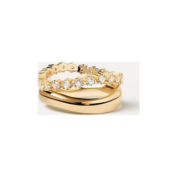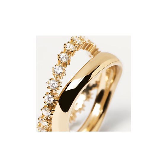 MATERIALE: Argento Sterling FINITURA: Placcatura in oro 18k PIETRE: Zircone Bianco DIAMETRO PIETRE: 2 mm SPESSORE TOTALE ANELLO: 12,4 mm PESO: 6,87g