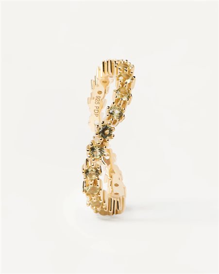 MATERIALE: Argento sterling 925 FINITURA: Placcatura in oro 18k PIETRE: Zircone Verde Lime DIAMETRO PIETRE: 2 mm SPESSORE ANELLO: 2,5 mmPESO: 1,95g